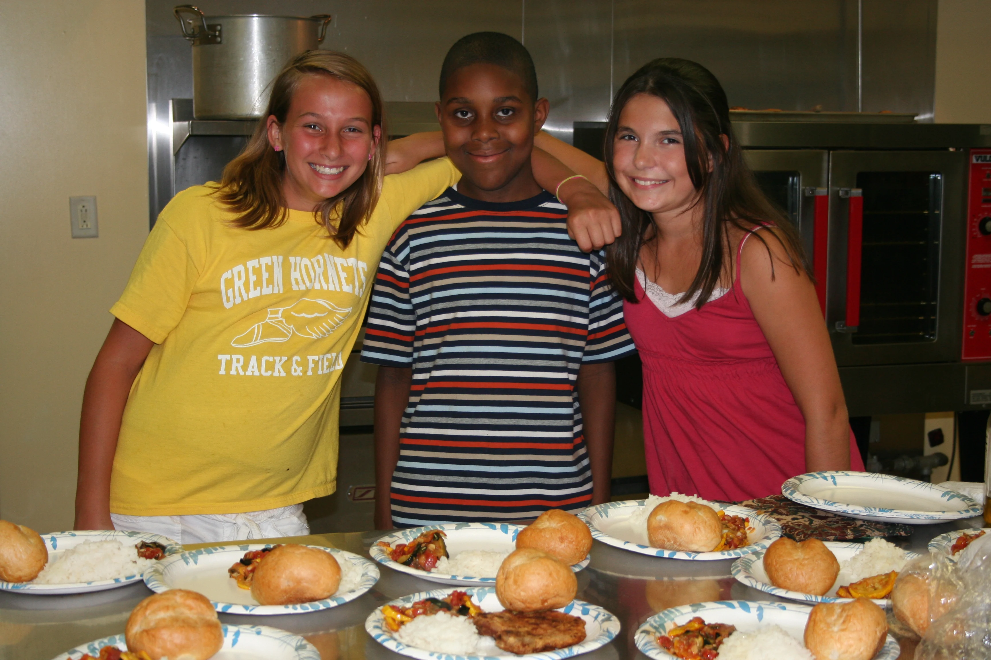 What was the solution? Using the harvest from our gardens we could create healthy, hot meals for anyone in need in my home town, Summerville, South Carolina. At Katie’s Krops, we had always donated our harvest to food pantries, soup kitchens and directly to families in need but at that point in time we had never cooked with our harvest. I approached the head of Food Services at my school, Mr. McNeill and my 6th Grade Science teacher, Cory Fuller. Together we created a plan. We would arrange a meal based on the harvest from our Katie’s Krops Gardens. What we couldn’t grow we would need to purchase. Our garden volunteers would help us create the dinner. The very first Katie’s Krops Dinner was born.
